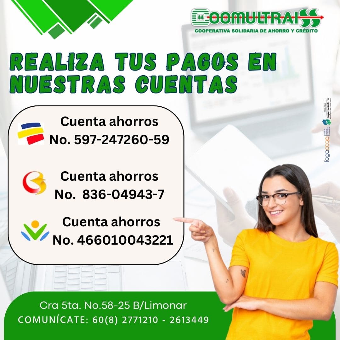 Actualmente contamos con tres convenios bancarios: Bancolombia, Banco agrario y Banco de Bogotá. En nuestra página tienes acceso para consultar los números de cuenta.